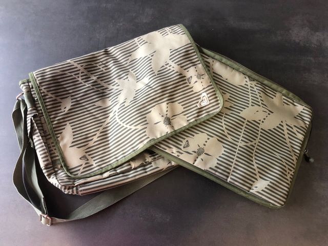 Bolsa tipo cartera + funda para portátil de hasta 17” de Roxy. Tiene varios bolsillos con y sin cremallera. Muy práctica. Perfecto estado