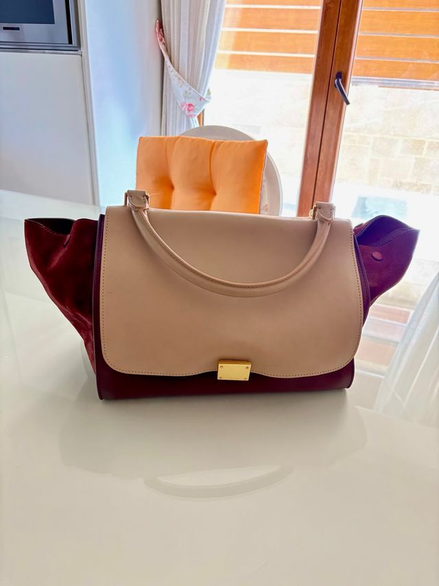 Bolso Céline Trapéze de Cuero Beige y Granate