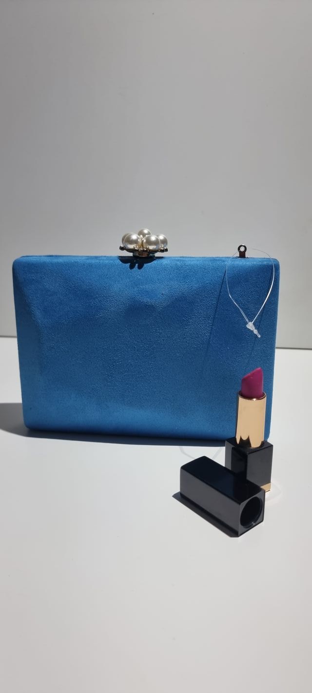 Bolso Clutch Fiesta Azul Perlas Nuevo