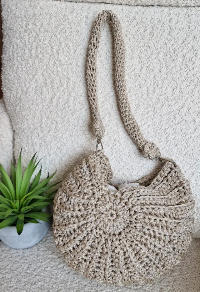 Bolso crochet concha beige dorado NUEVO