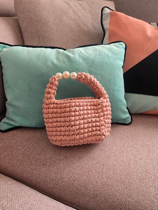 Bolso crochet mini perlas rosa