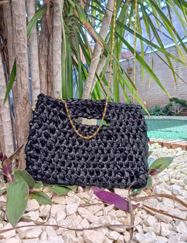 Bolso crochet negro con cadena dorada
