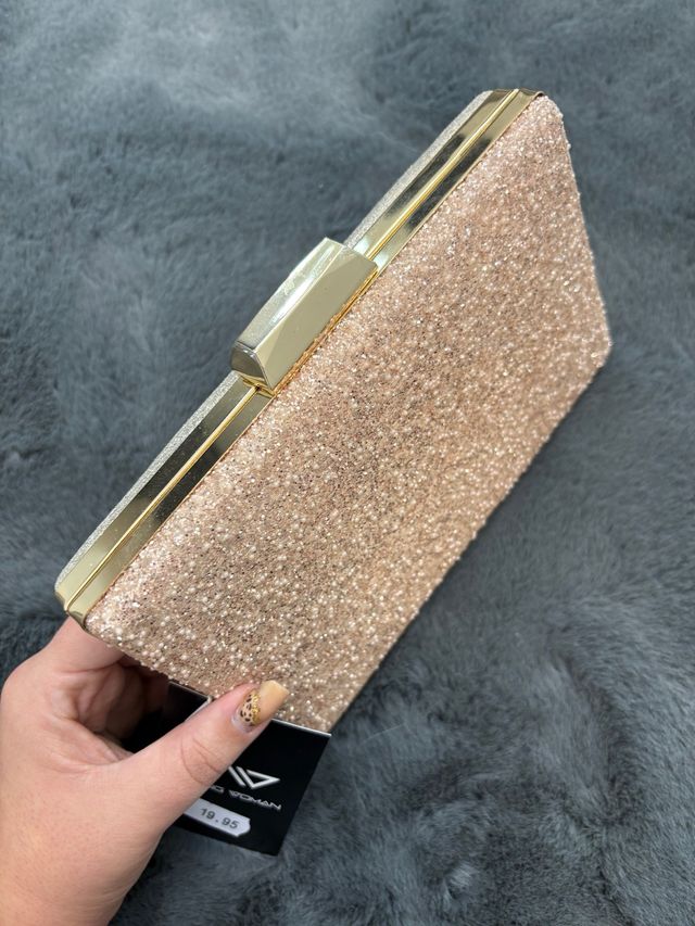 Bolso de fiesta con brillos dorado
