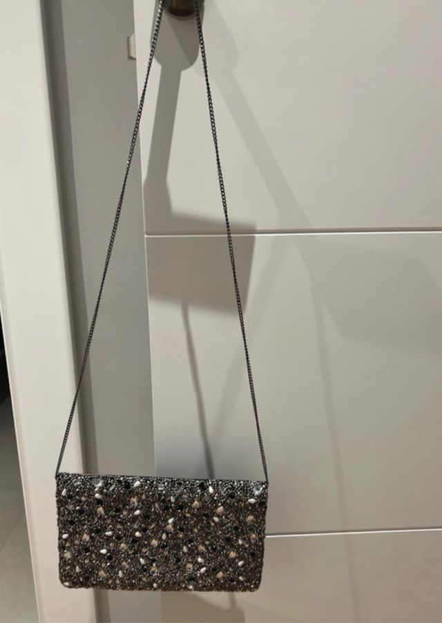 Bolso de fiesta plateado con pedrería