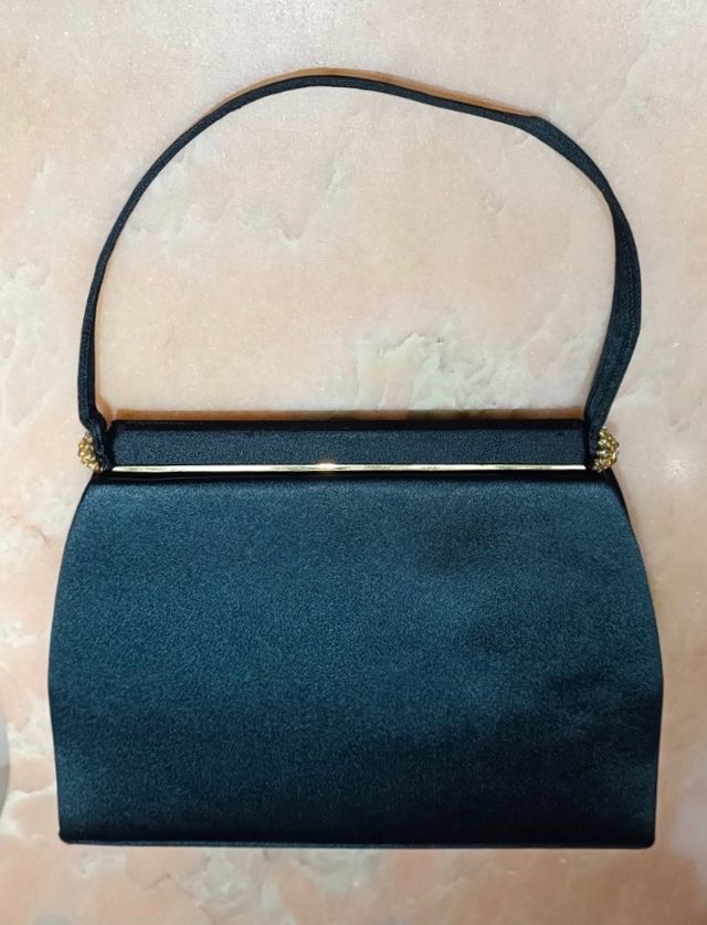 BOLSO DE FIESTA VINTAGE DE RASO NEGRO CON ASA
