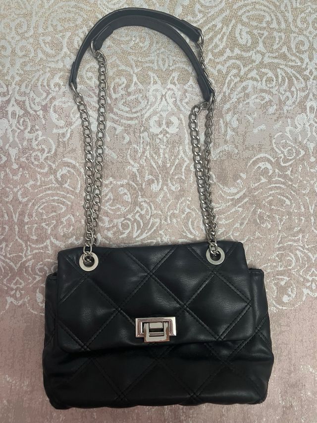 Bolso de hombro negro acolchado