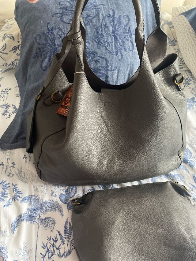 bolso de hombro y bandolera gris