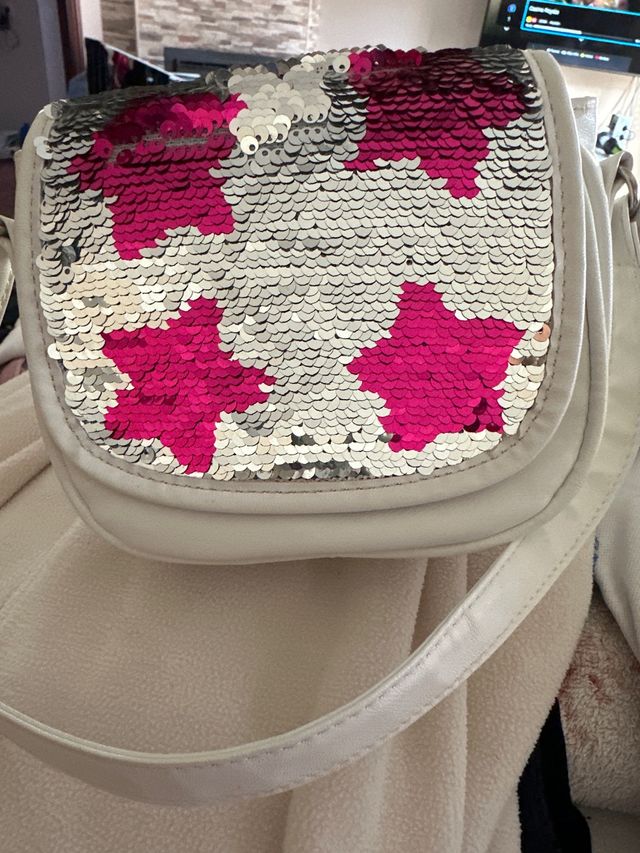 Bolso de lentejuelas rosa y plateado