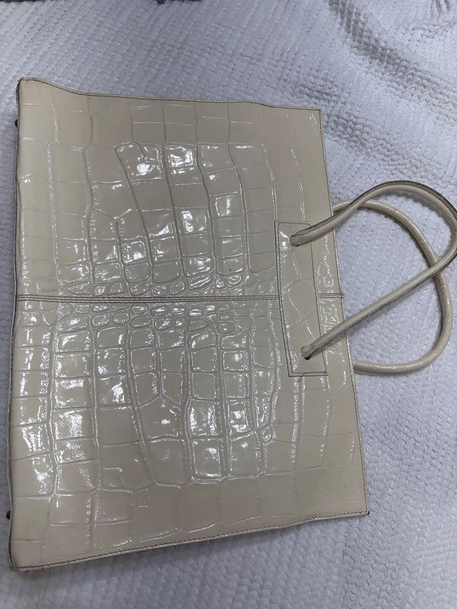 Bolso de mano blanco tipo cocodrilo
