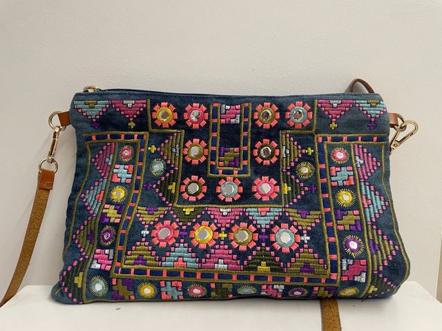 Bolso de mano bordado con espejos