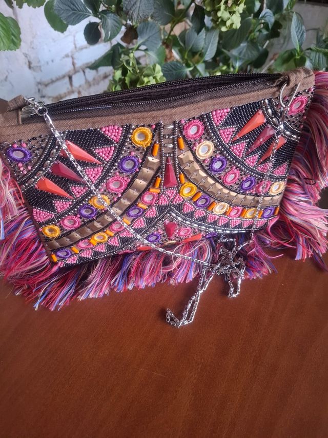 Bolso de mano con flecos y pedrería