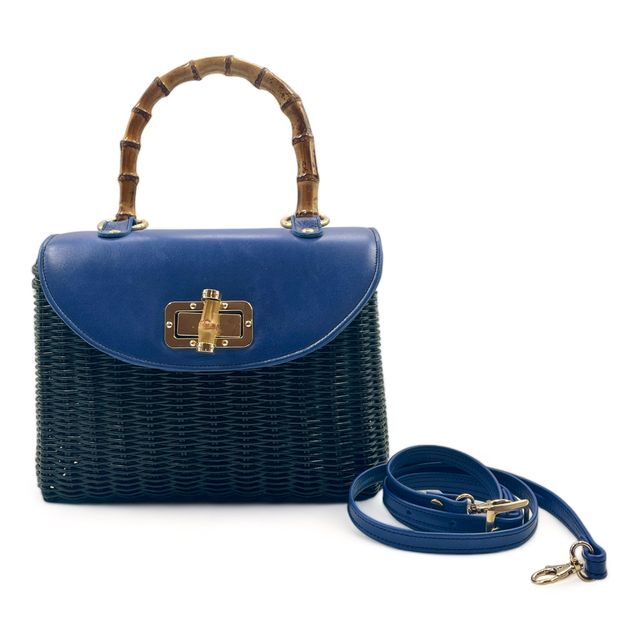 Bolso de mano de fiesta de mimbre y piel