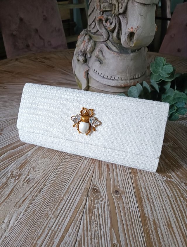 Bolso de mano fiesta beige con abeja