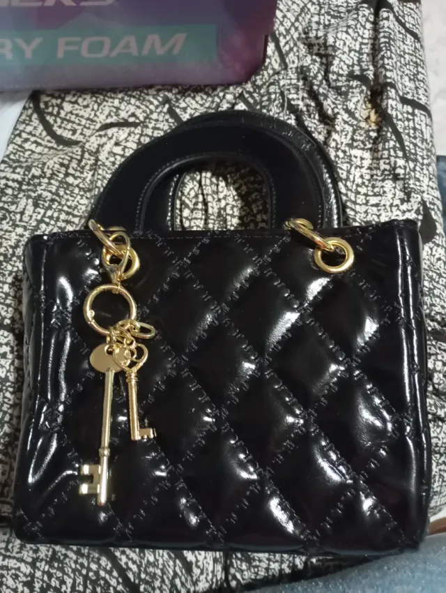 Bolso de mano negro acolchado con llavero