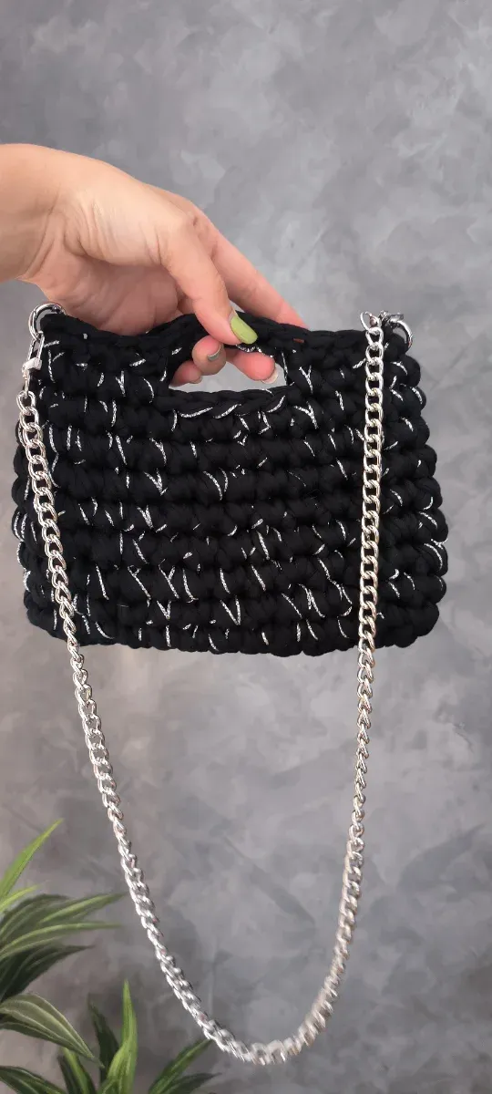 Bolso de mano negro y plata