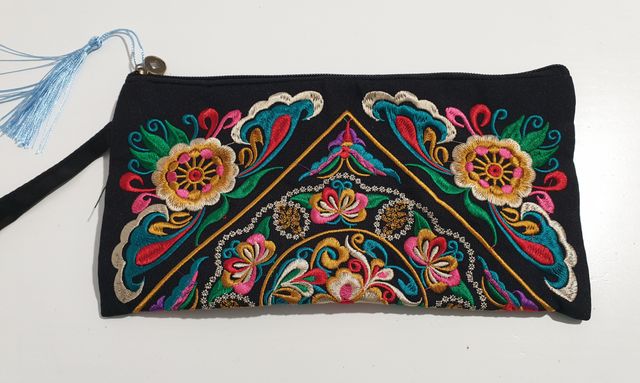 Bolso de mano o Cartera negro bordado flores