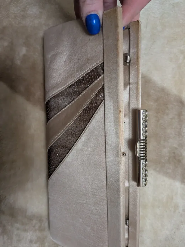 Bolso de mano para fiesta beige y dorado