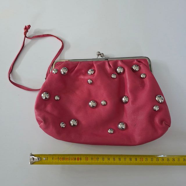 Bolso de mano rosa con tachuelas plateadas