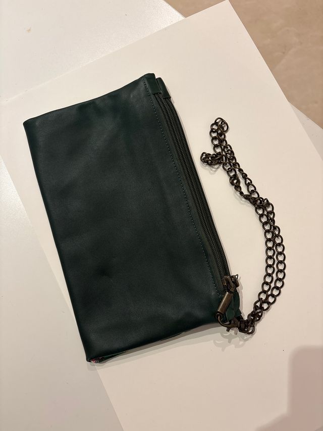 Bolso de mano verde con cadena
