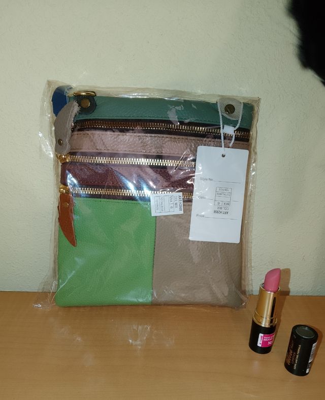 Bolso de piel multicolor. Correa en el interior.