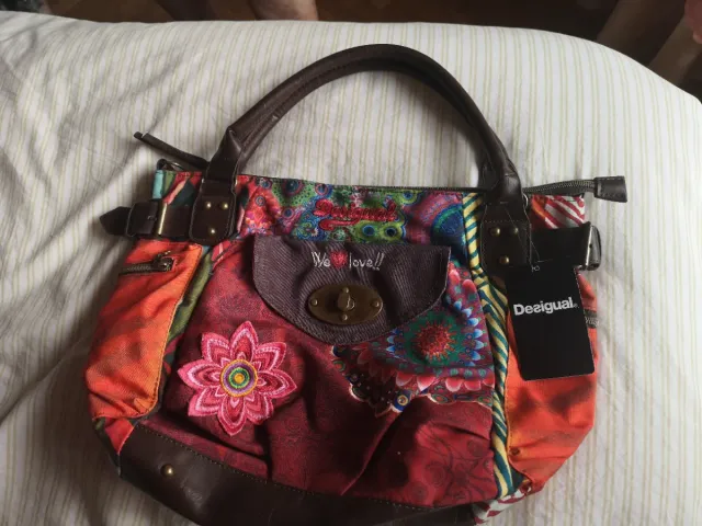 Bolso original de la marca Desigual con vivos de colores.