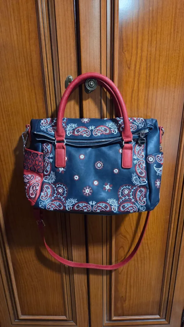 Bolso Desigual Paisley Bordado Azul y Rojo