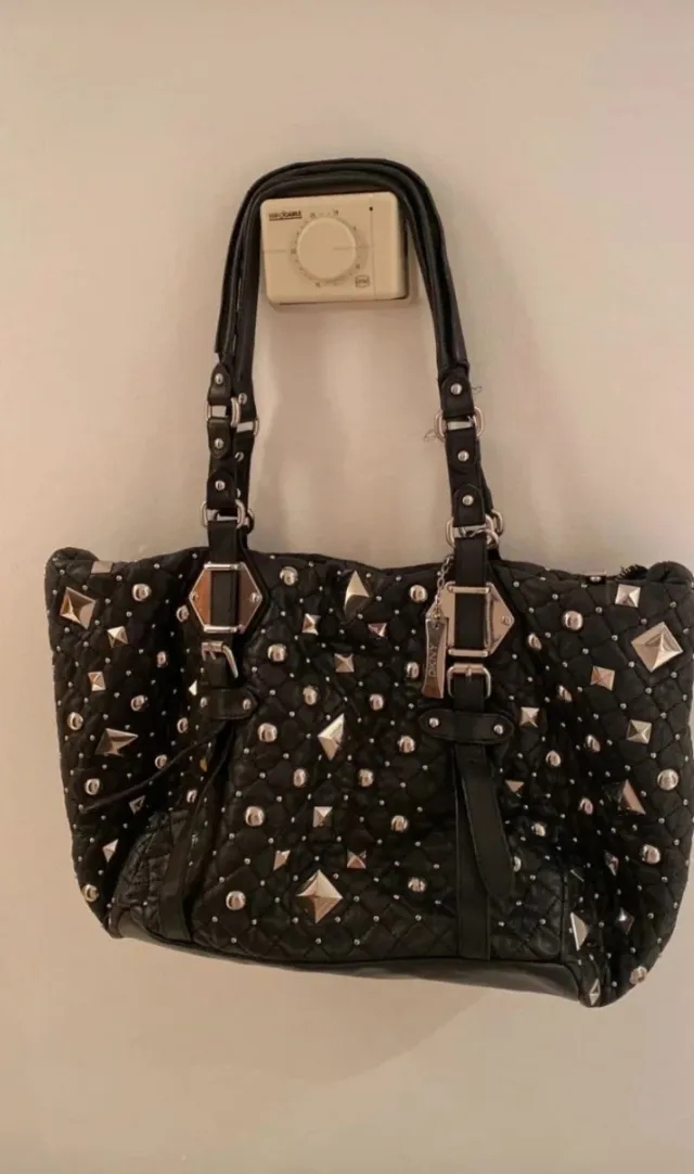 Bolso DKNY Piel Negro Tachuelas Vintage