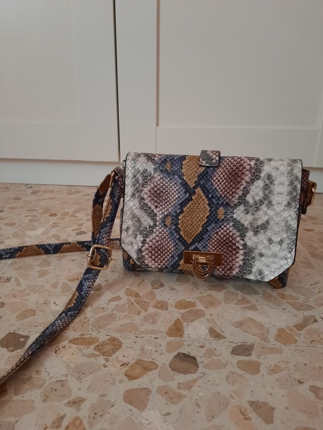 Detalles del productoSe vende bolso de piel sintética con estampado de serpiente.
