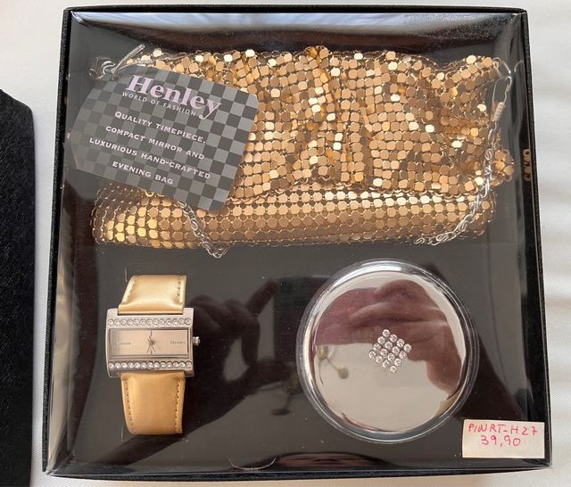 Bolso fiesta con reloj y espejo de aumento, nuebo