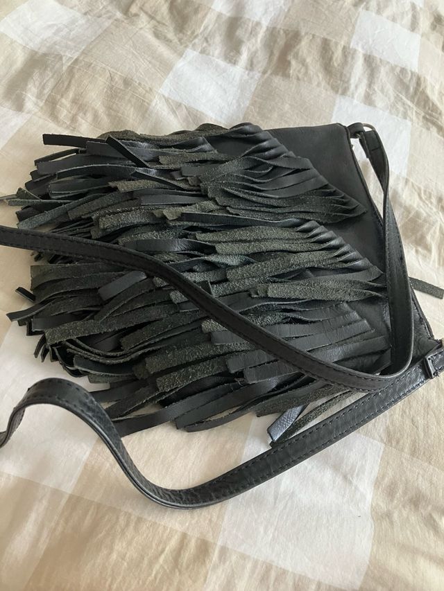 Bolso flecos piel negra