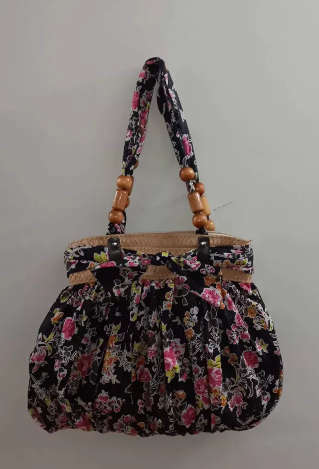 Bolso floral negro y rosa