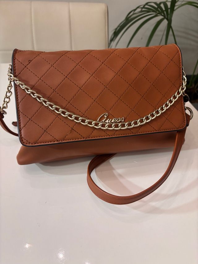 Bolso Guess Marrón Acolchado Cadena Dorada