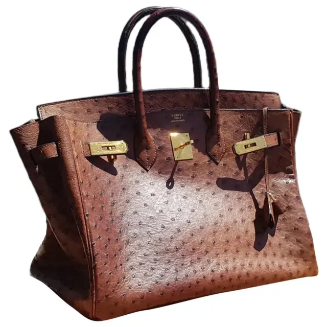 Bolso Hermes Piel de Avestruz Marrón Dorado
