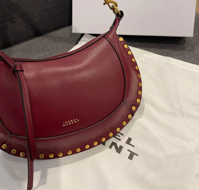 Bolso Isabel Marant modelo Oskan Moon, color Burdeos y tachuelas en Dorado