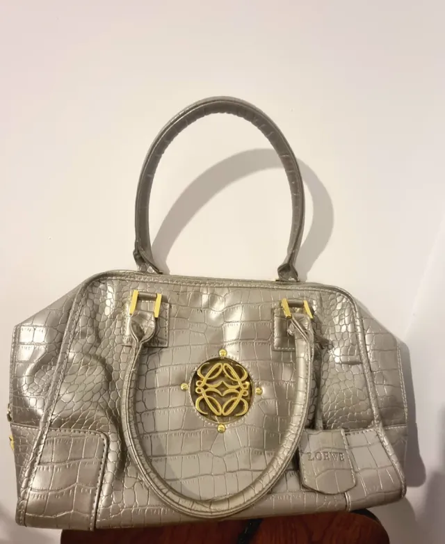 Bolso Loewe Piel Cocodrilo Dorado Plateado
