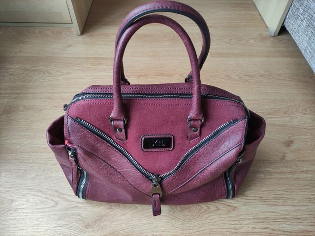 bolso marca Xti grande de color granate con asa bandolera ajustable, bolsillos interior y exterior, en perfecto estado.