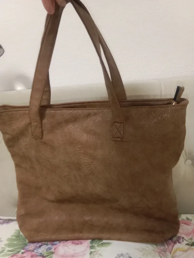 Bolso marrón con diseño floral imitación piel