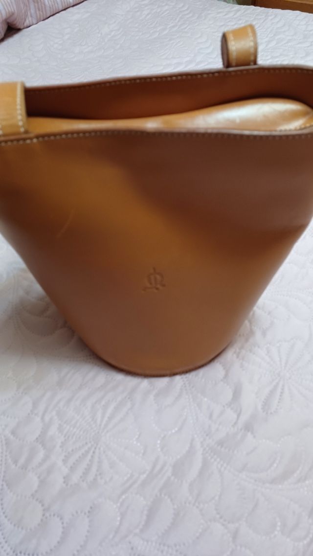 Precioso bolso de piel en color marrón. Es de tamaño grande y tiene un diseño elegante y atemporal. Tiene forma de cubo.