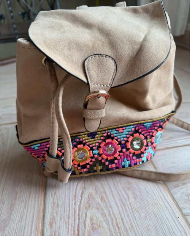 Bolso Mochila Boho Beige Multicolor
