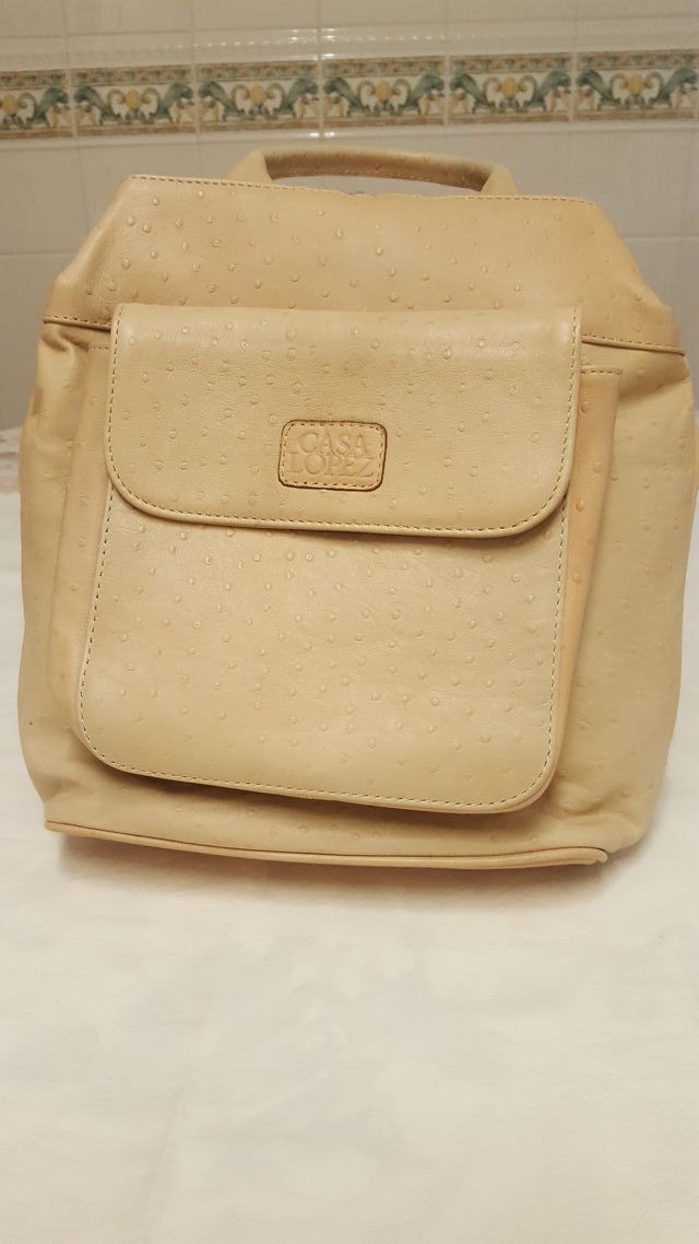 BOLSO MOCHILA DE CUERO DE COLOR BEIGE