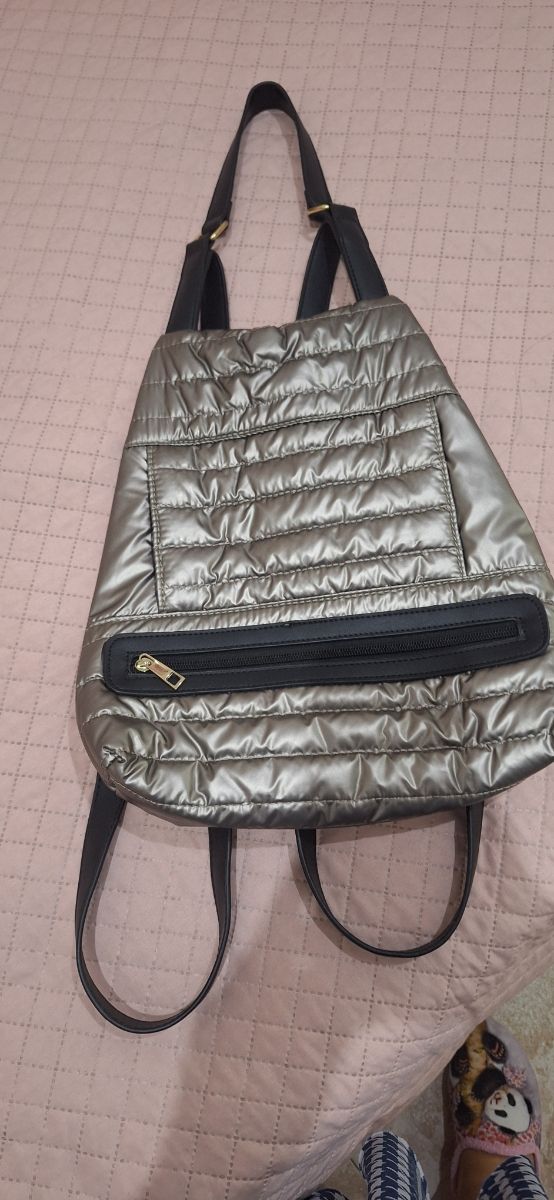 Bolso Mochila Mujer Negro y color bronce metalizad