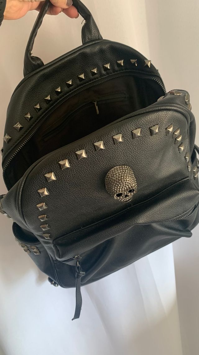 Bolso Mochila Negro Tachuelas Calavera
