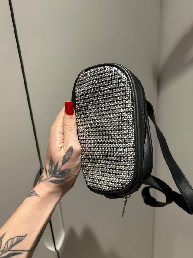 Bolso negro con brillos plateados, fiesta