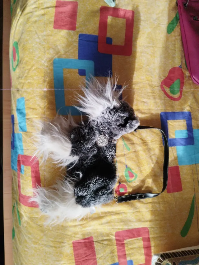 Bolso perro gris y blanco