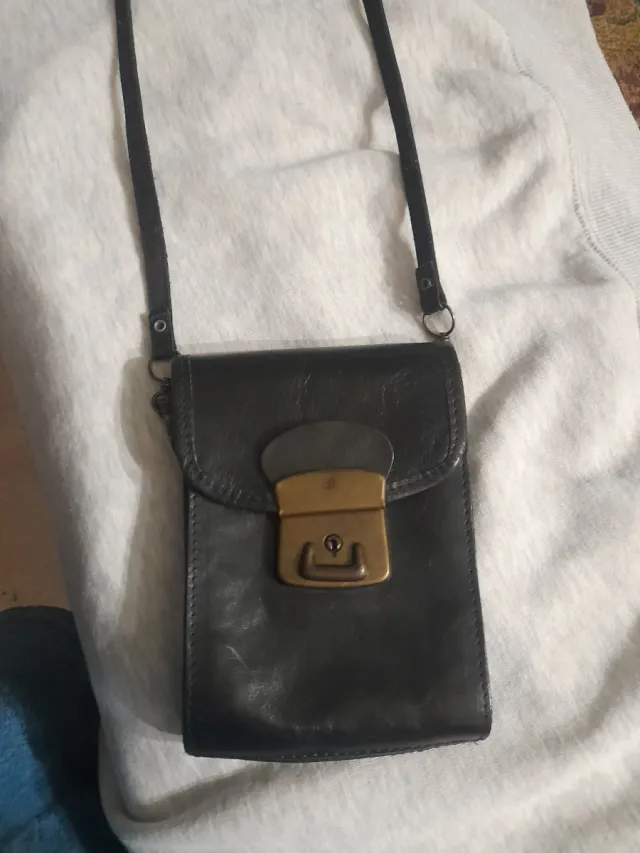 Bolso de cuero natural vintage negro con cierre me