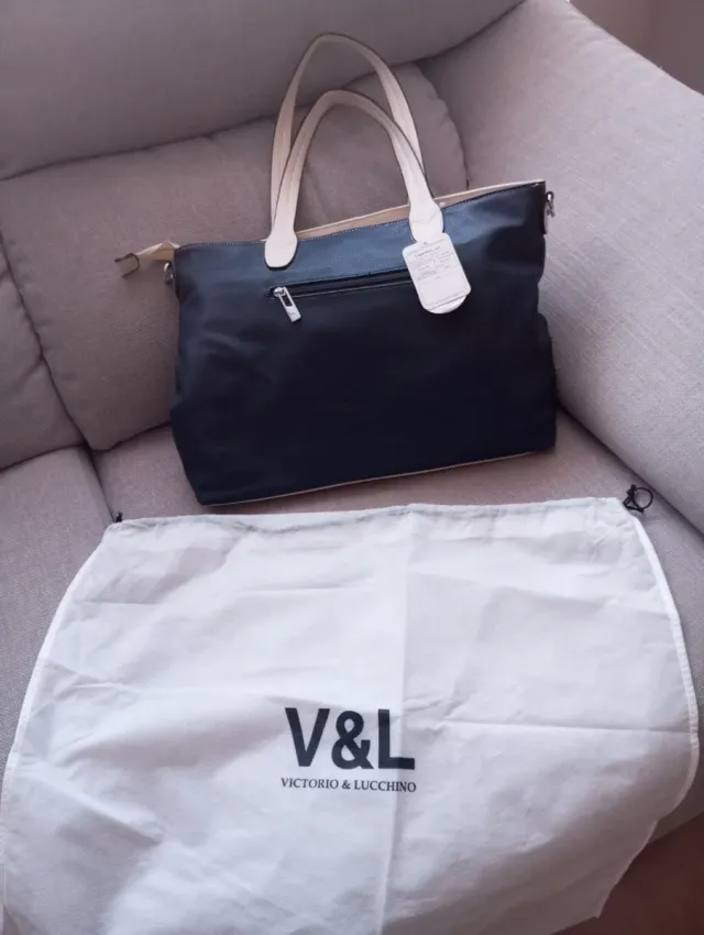 Bolso Piel Victorio & Lucchino Azul/Beige
