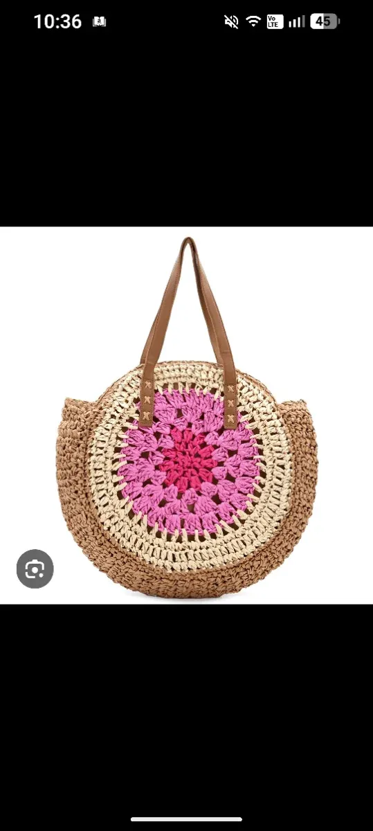 Bolso redondo de rafia con diseño floral