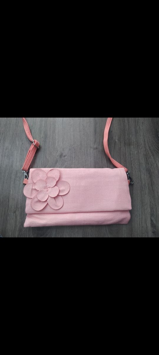Bolso rosa con flor.