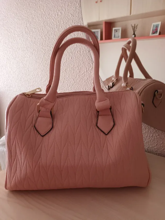 Bolso rosa de mano con diseño acolchado