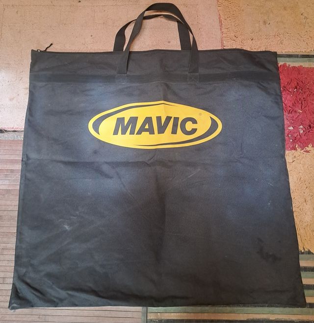 Detalles del productoen Fuerteventura, Funda Mavic para rueda de bicicleta, es alta calidad, exterior para sol y lluvia, interior impermeable, como nueva, mide 80cm x 84cm, para ruedas completas hasta 29".